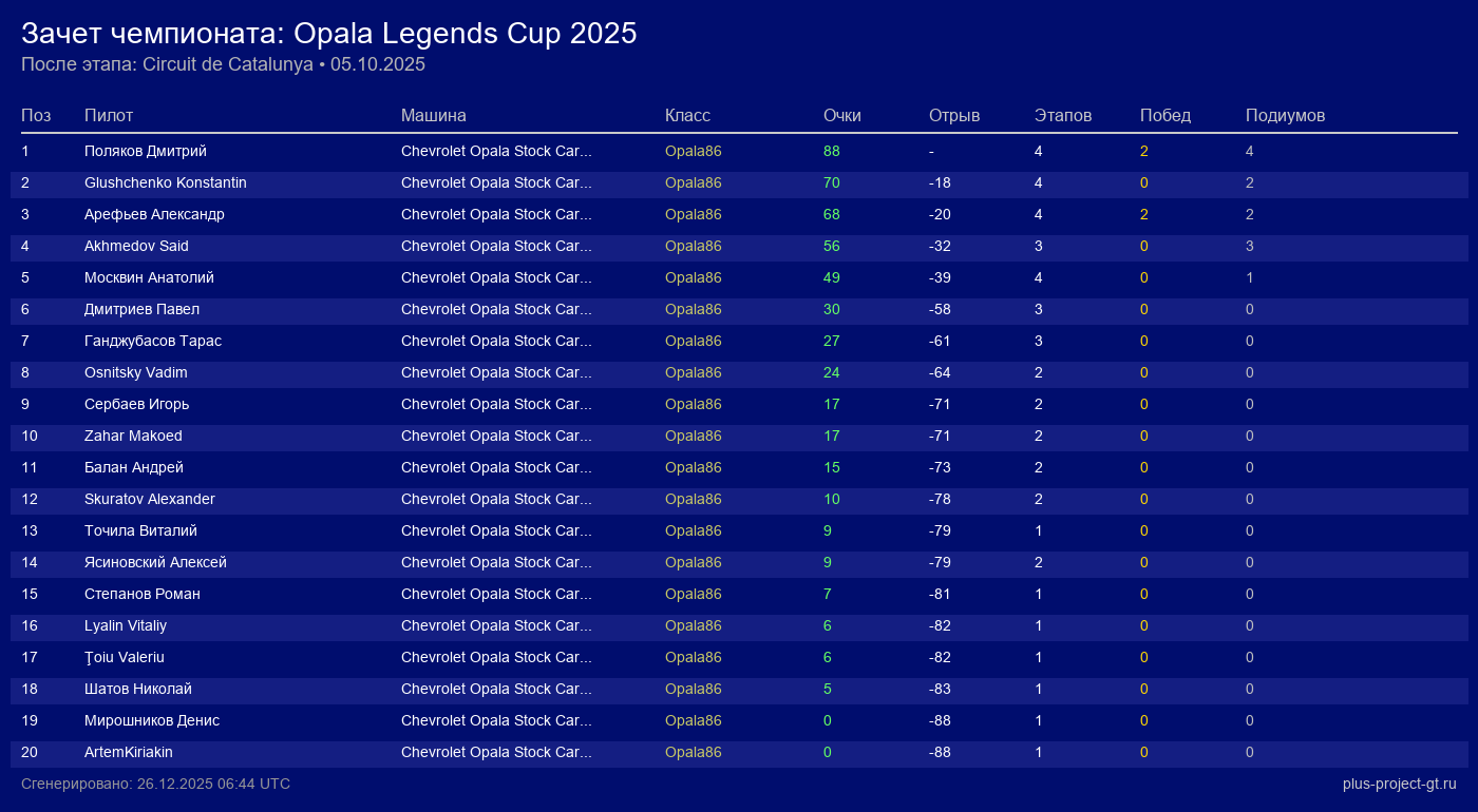 | Поз. | Пилот | Машина | Команда | Очки | |||