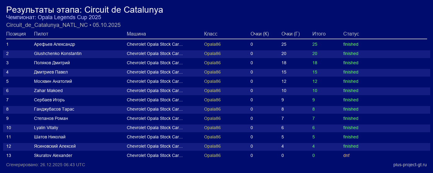 Skuratov Alexander | Chevrolet Opala Stock Cars 1986 | 0 | 18 | 1:18.574 | - | DNF |