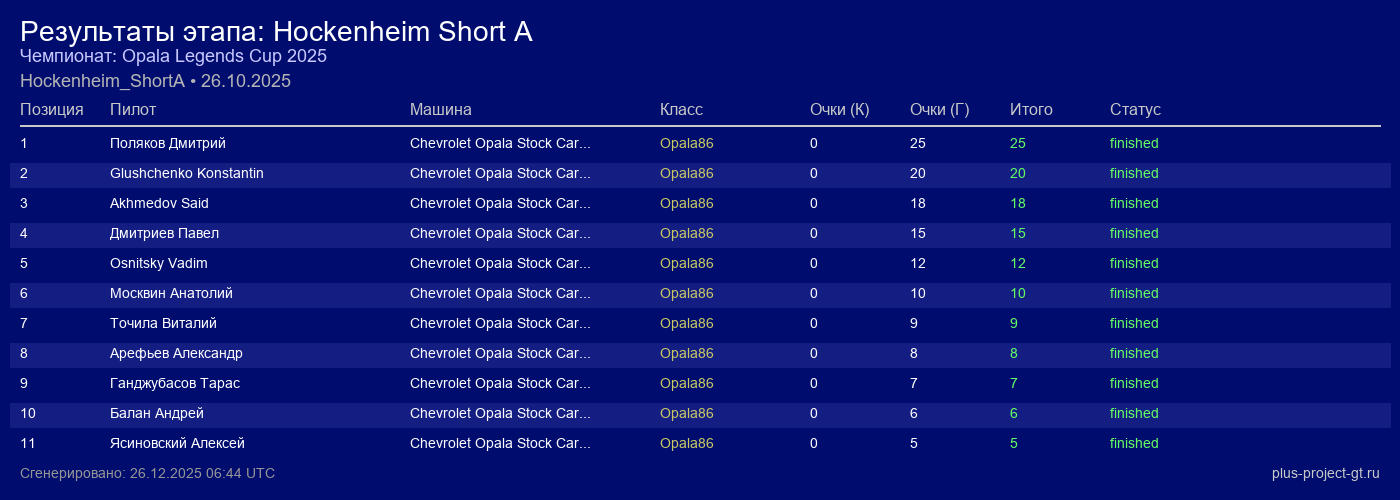 Skuratov Alexander | Chevrolet Opala Stock Cars 1986 | - | 10 | |