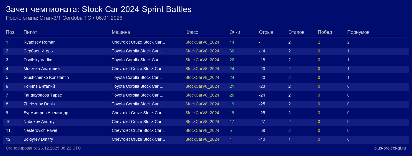 Chevrolet Cruze Stock Car 2024 | - | 17 | |