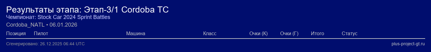 | Поз. | Пилот | Машина | Команда | Очки | |||
