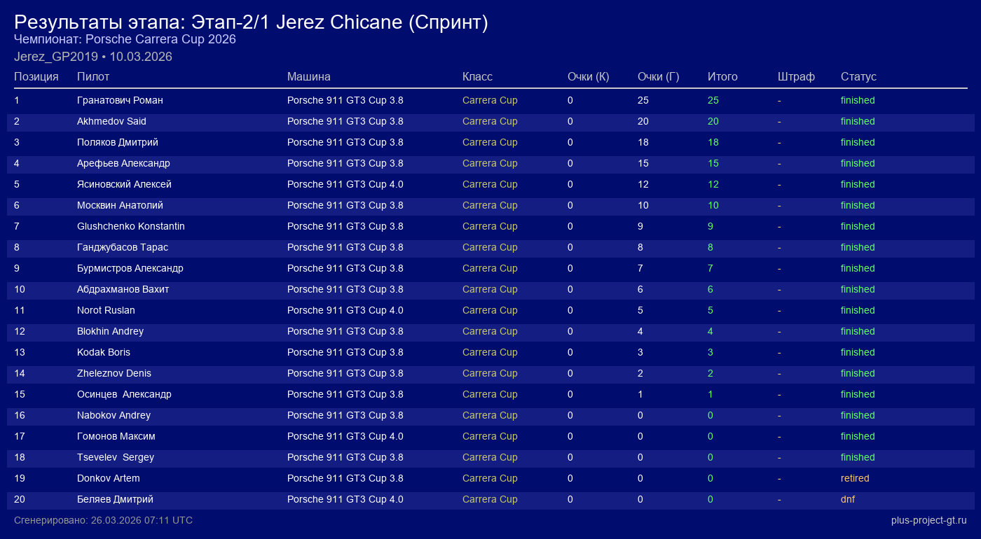 Porsche 911 GT3 Cup 4.0 | 12 | 15 | 1:47.736 | 27:19.170 | — | Финиш | |