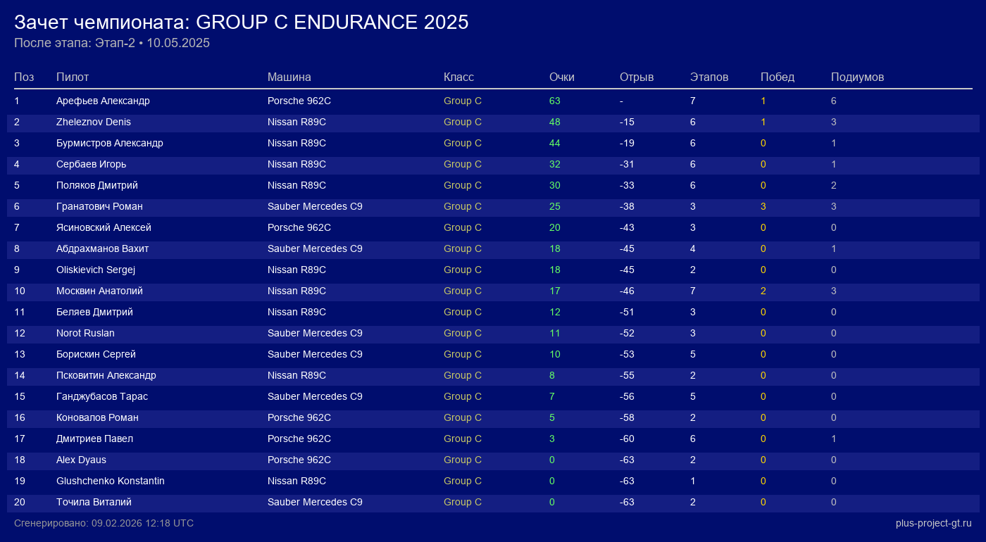 Nissan R89C | Force Feedback | 7 | 40 | 2:05.022 | 91:28.580 | Финиш |
