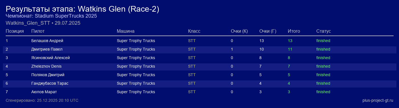Super Trophy Trucks | 3 | 10 | 1:37.737 | 17:00.180 | Финиш |