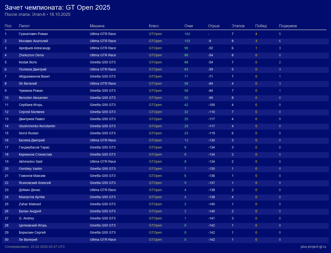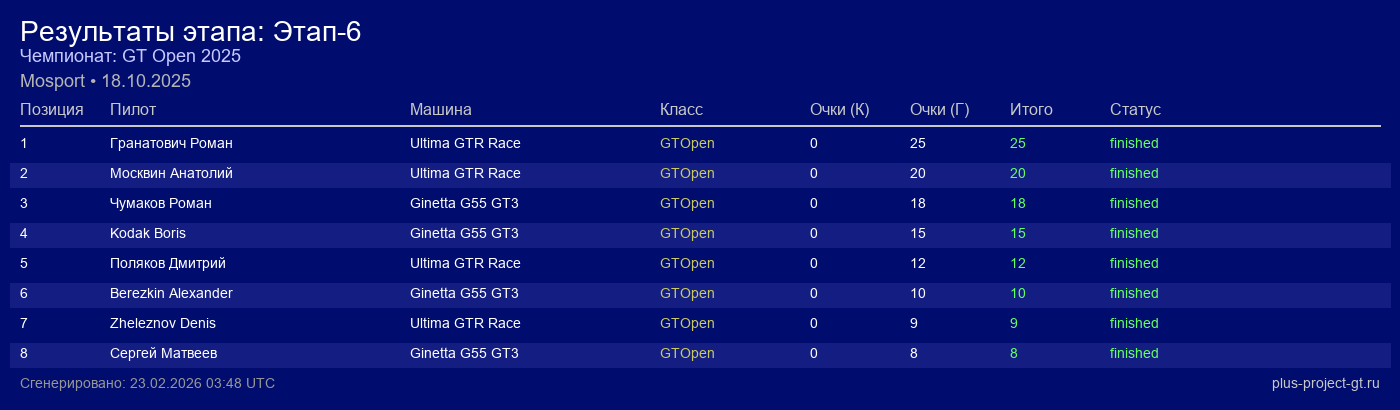 Ginetta G55 GT3 | Racing Games Community | 18 | 58 | 1:17.040 | 76:24.430 | Финиш |