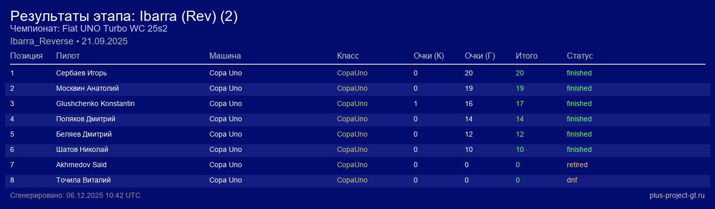 Copa Uno | 17 | 12 | 1:44.366 | 21:08.850 | Финиш | |