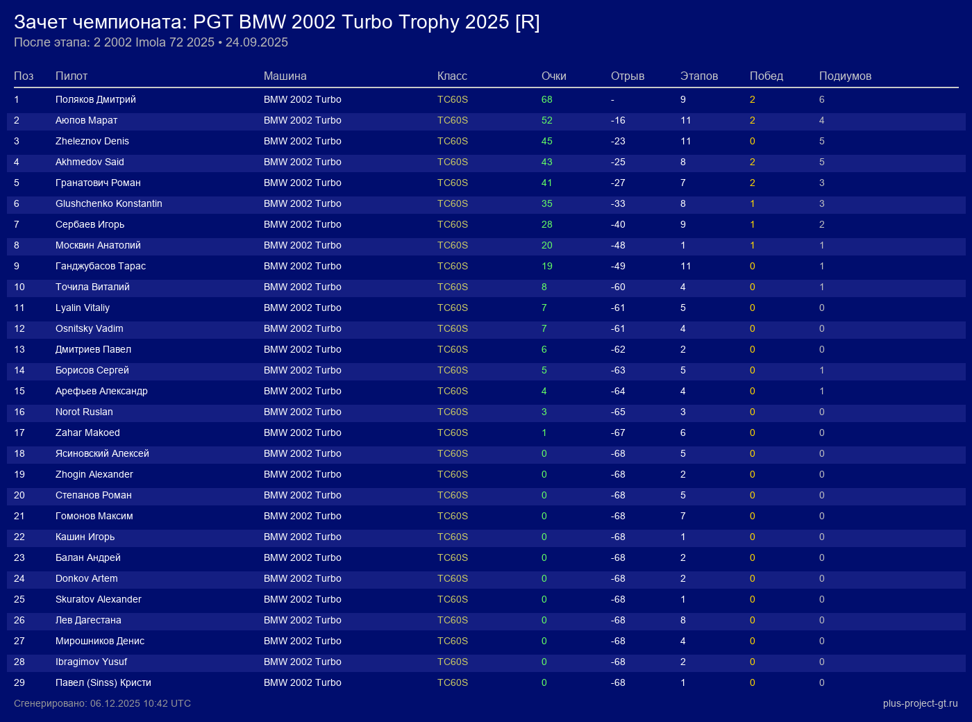 | Поз. | Пилот | Машина | Команда | Очки | |||