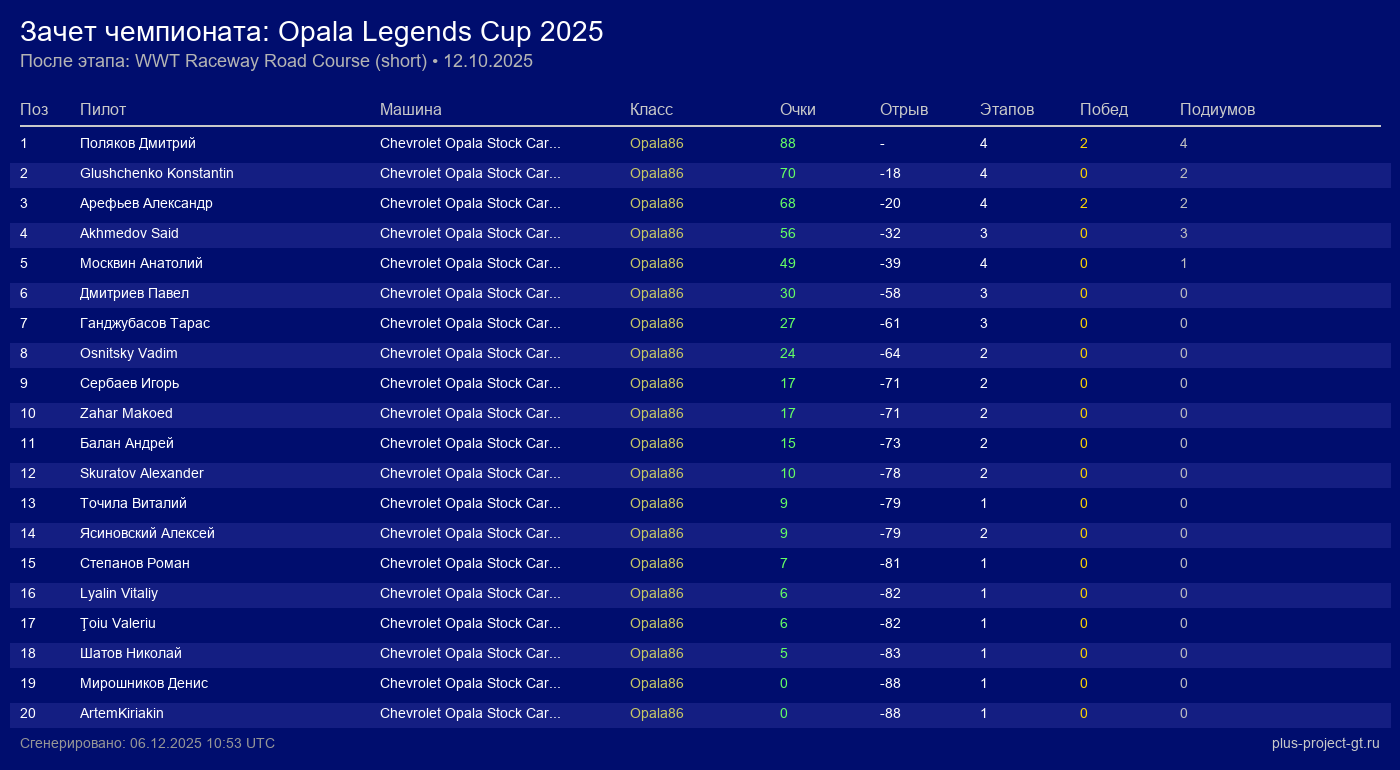 Skuratov Alexander | Chevrolet Opala Stock Cars 1986 | - | 10 | |