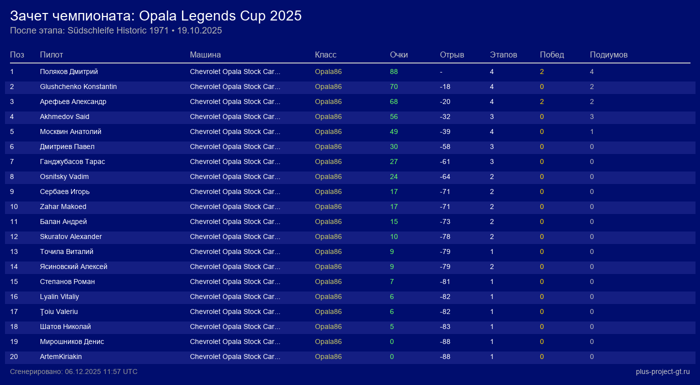 Skuratov Alexander | Chevrolet Opala Stock Cars 1986 | - | 10 | |