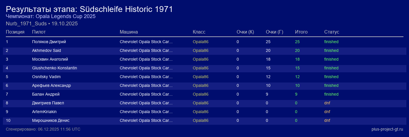 | Поз. | Пилот | Машина | Команда | Очки | |||