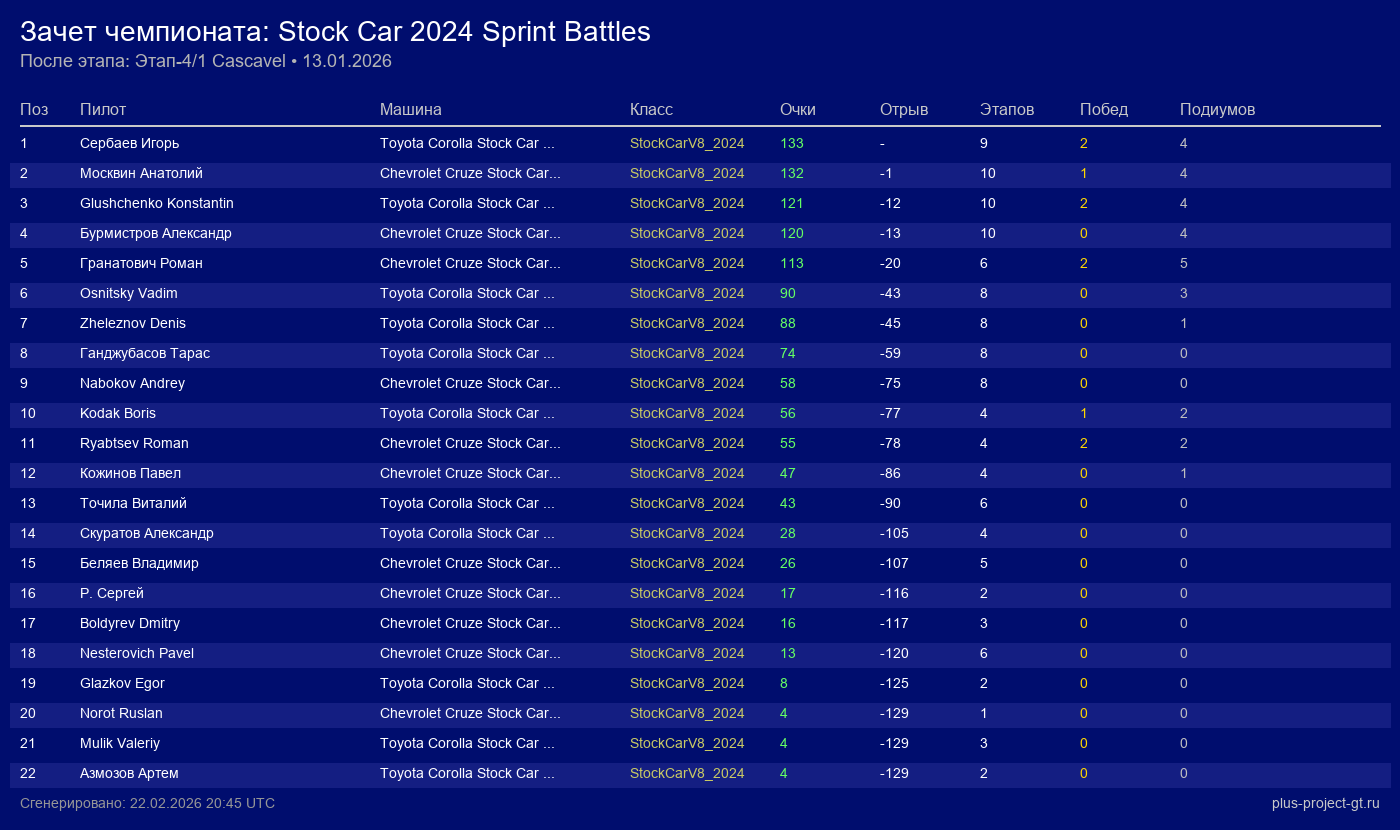 Toyota Corolla Stock Car 2024 | 8 | 18 | 1:06.647 | 20:57.080 | Финиш | |