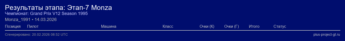 | Поз. | Δ | Пилот | Машина | Команда | Очки | Круги | Быстрый круг | Полное время | Статус |