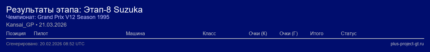 Поз. Δ Пилот Машина Команда Очки Круги Быстрый круг Полное время Статус