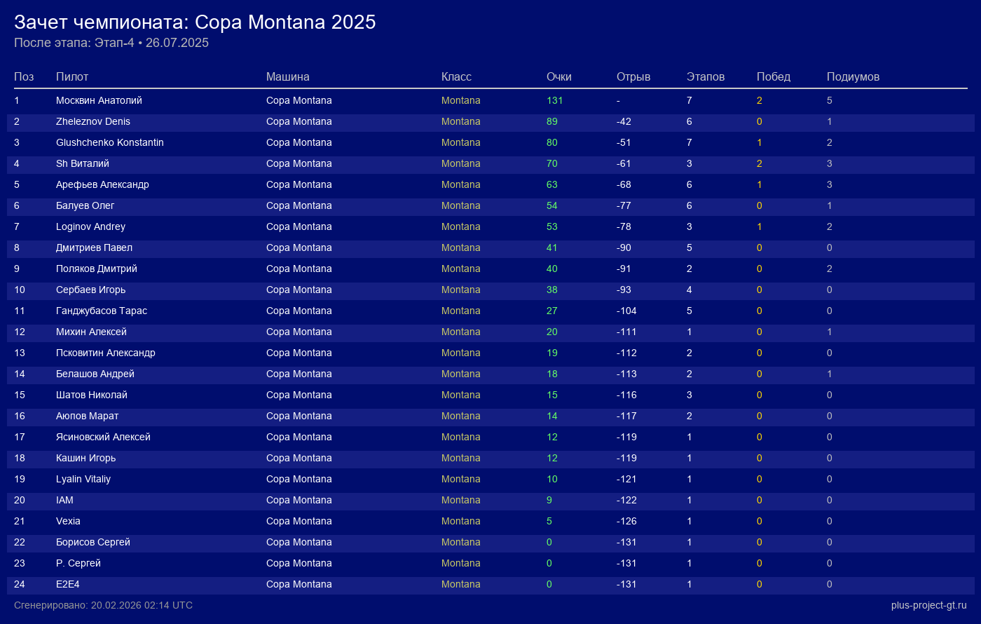 Loginov Andrey | 1398.0 | 1418.0 | +20.0 | 40.0 | — |